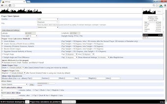 この拡張機能は、IslamicFinder.orgに基づいたさまざまな計算方法を提供し、必要に応じて個別の祈りの時間を調整するオプションも用意されています。また、オフラインでも動作し、インターネットに接続するとすぐに祈りの時間を更新します。